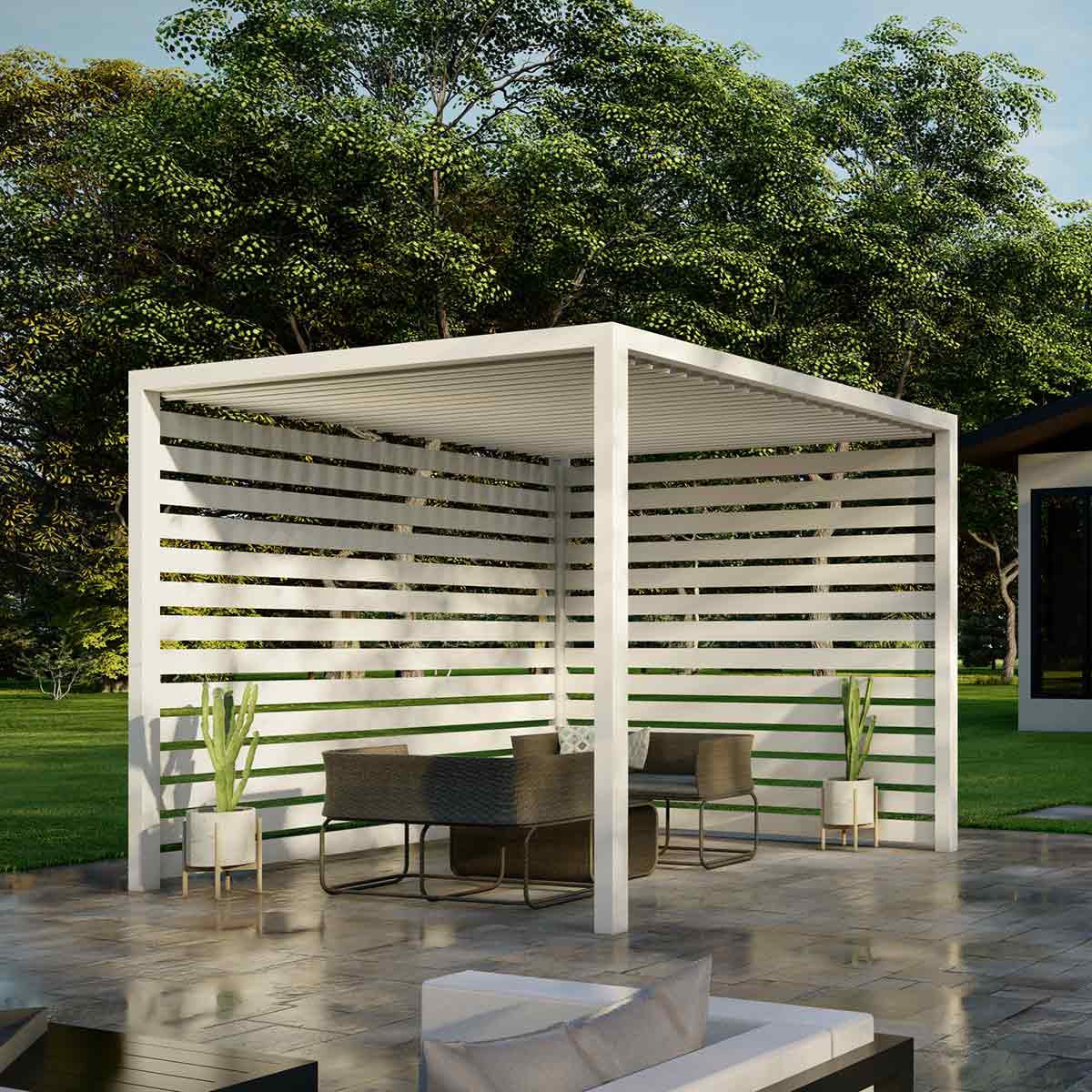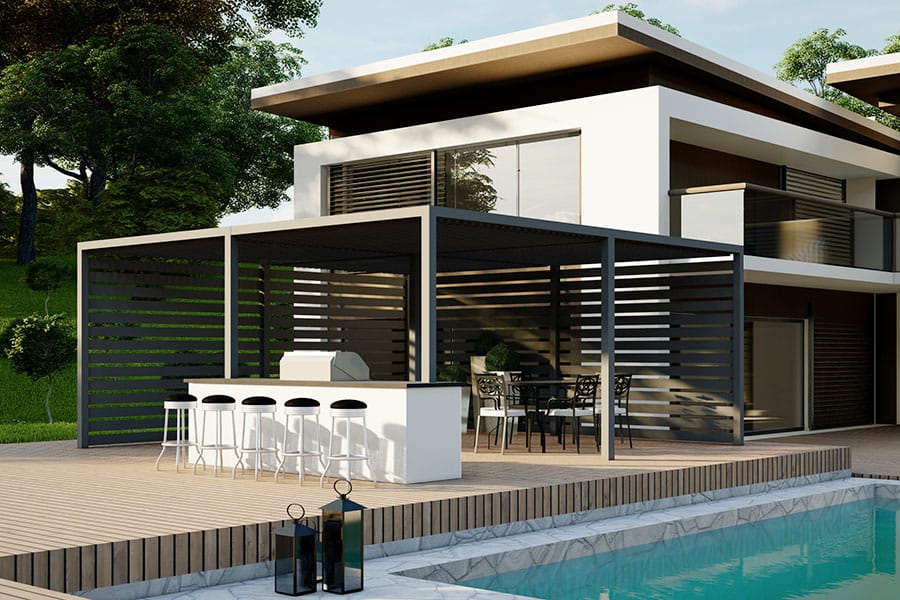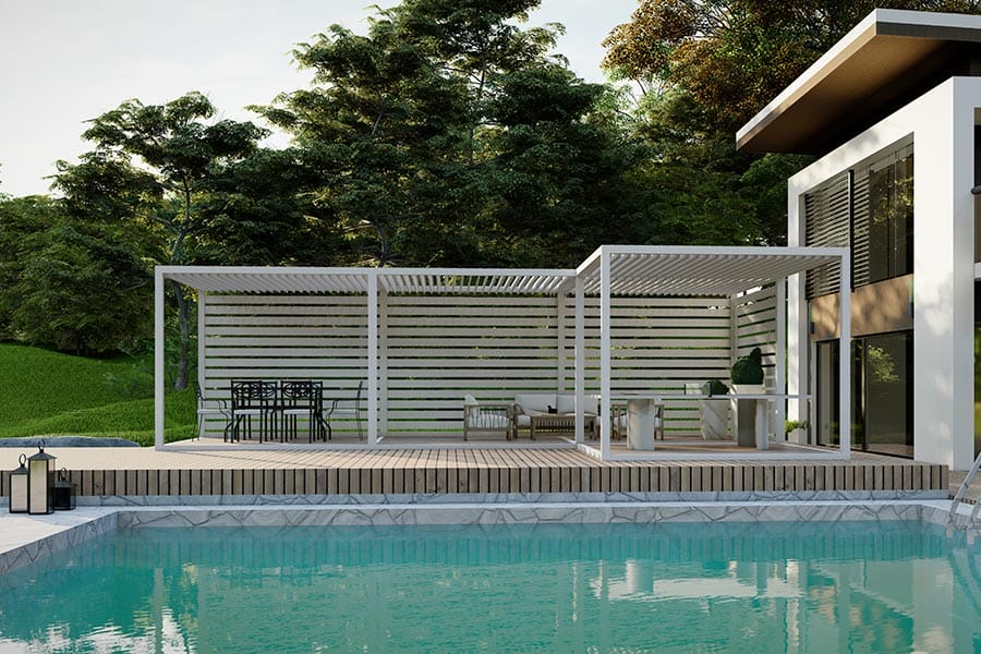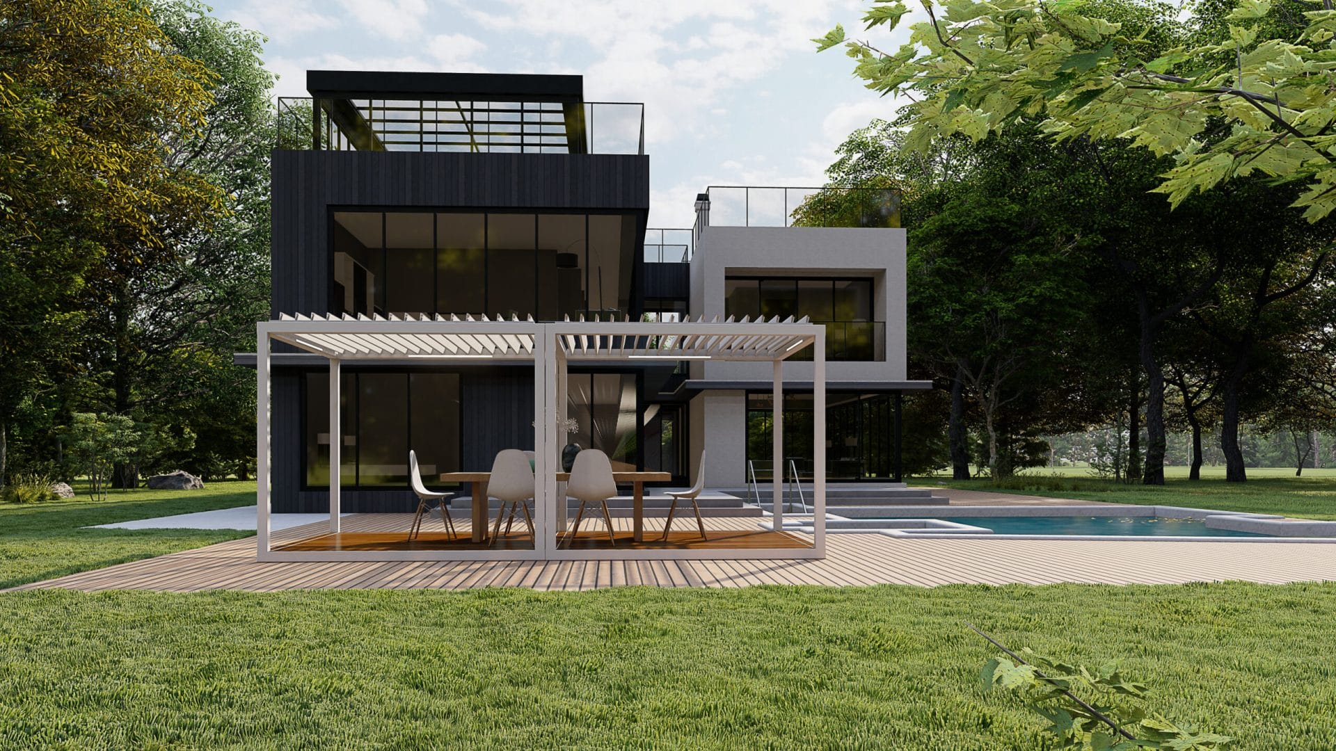 K-BANA™ is a manual Louvered pergola designed for effortless outdoor living.