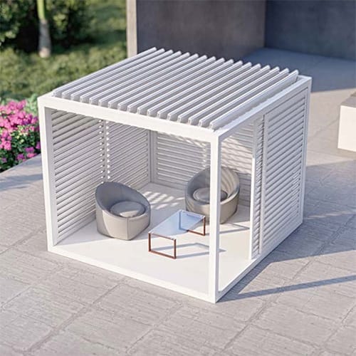 Reimagine your outdoor living space with the K-BANA™, a versatile pergola with a manual louvered roof. This innovative design allows you to effortlessly control sunlight and airflow, creating the perfect ambiance for any occasion.